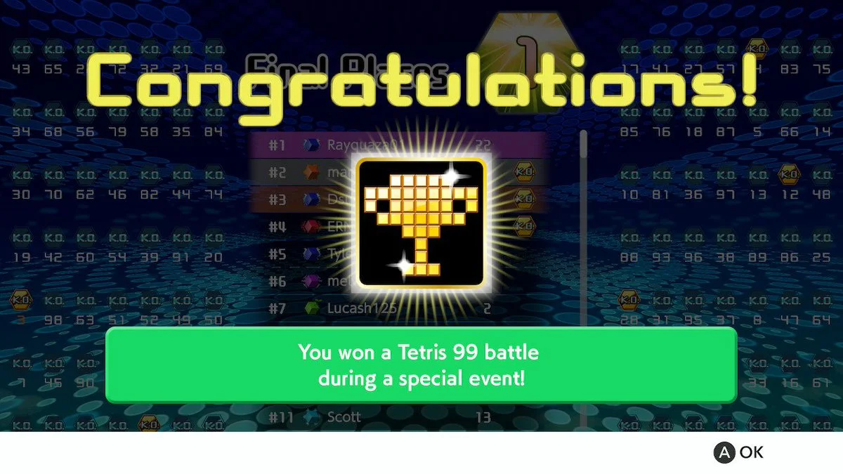 #Tetris99 #Tetris #NintendoSwitch 2nd place on my first attempt at Tetris Battle Royale!